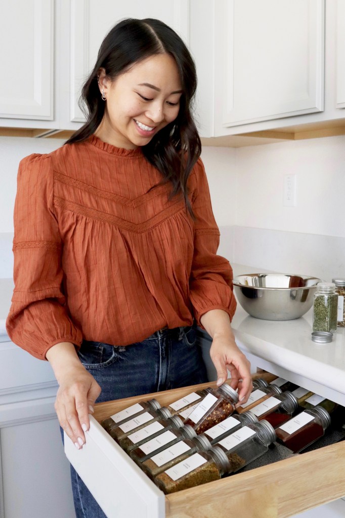 I organized the spices on the tray insert by frequency of use, by type of spice/seasoning/blend, and in alphabetical order. I placed the extra spices that I didn’t use as often and couldn’t fit in this drawer in the cabinet right above. And there we go… I was ready to start cooking!