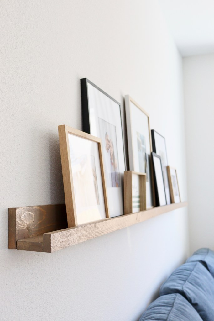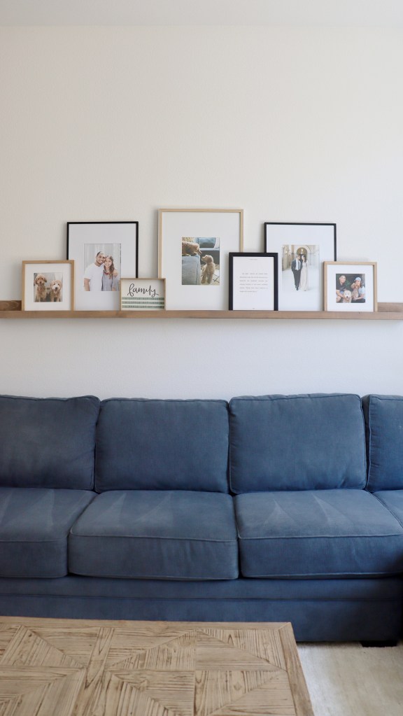 I styled my picture ledge with different but complementary frames and photos that I had laying around the house… and that’s it! I love that I can easily switch out my frames and photos as desired!