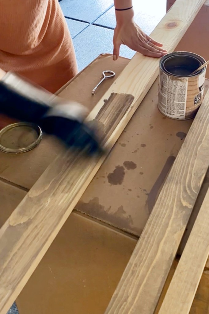 I applied wood conditioner, let that dry for approximately 15 minutes and applied Varathane Flagstone wood stain.