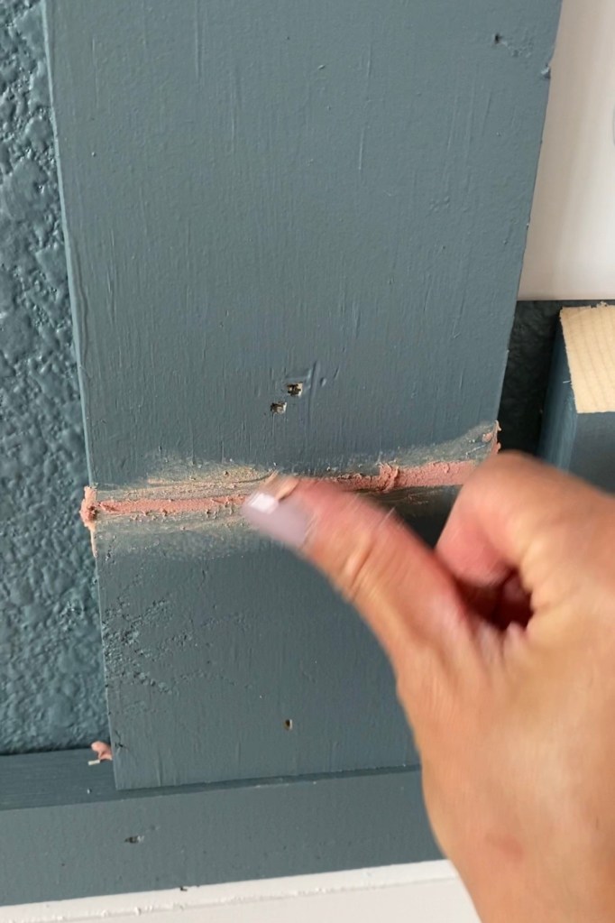 Next, I filled in the gaps, nail holes, and wood defects with wood filler.