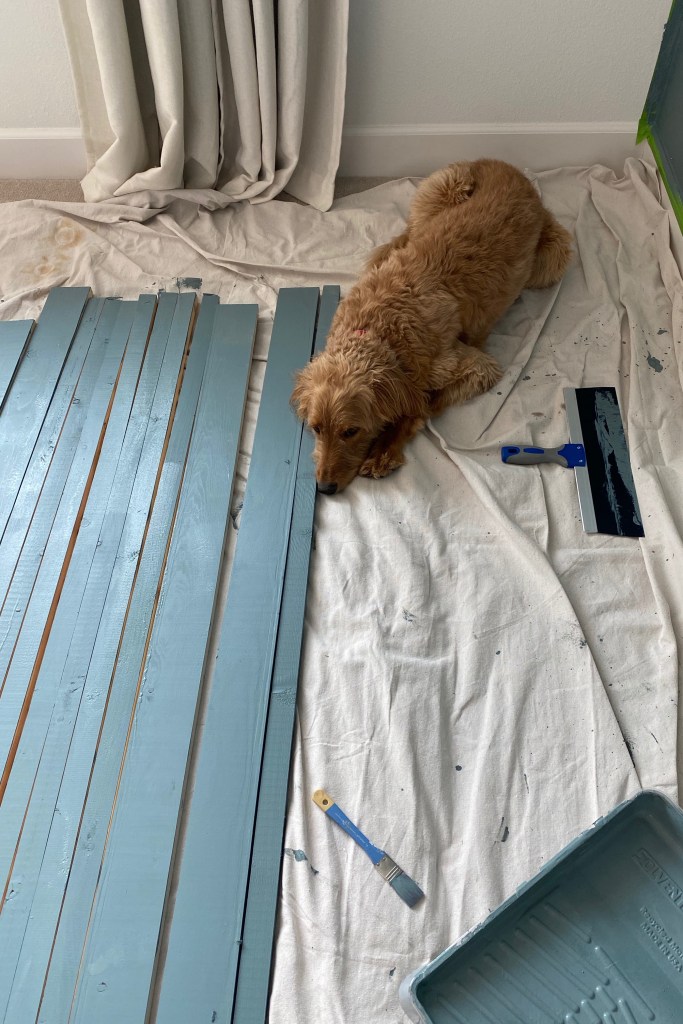 While waiting for the paint on the wall to dry completely, I painted the wood panels. Is it sad that my arms were sore the next day from all the painting?