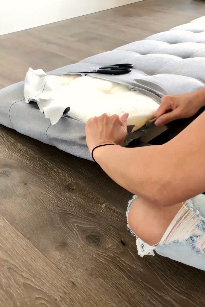 I made sure to remove as much of the extra fabric as I could, as close to the existing staples as I could.
