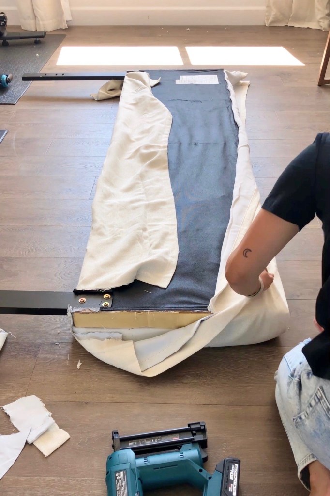 I cleaned up the edges and corners by stapling any areas of loose fabric to the headboard.