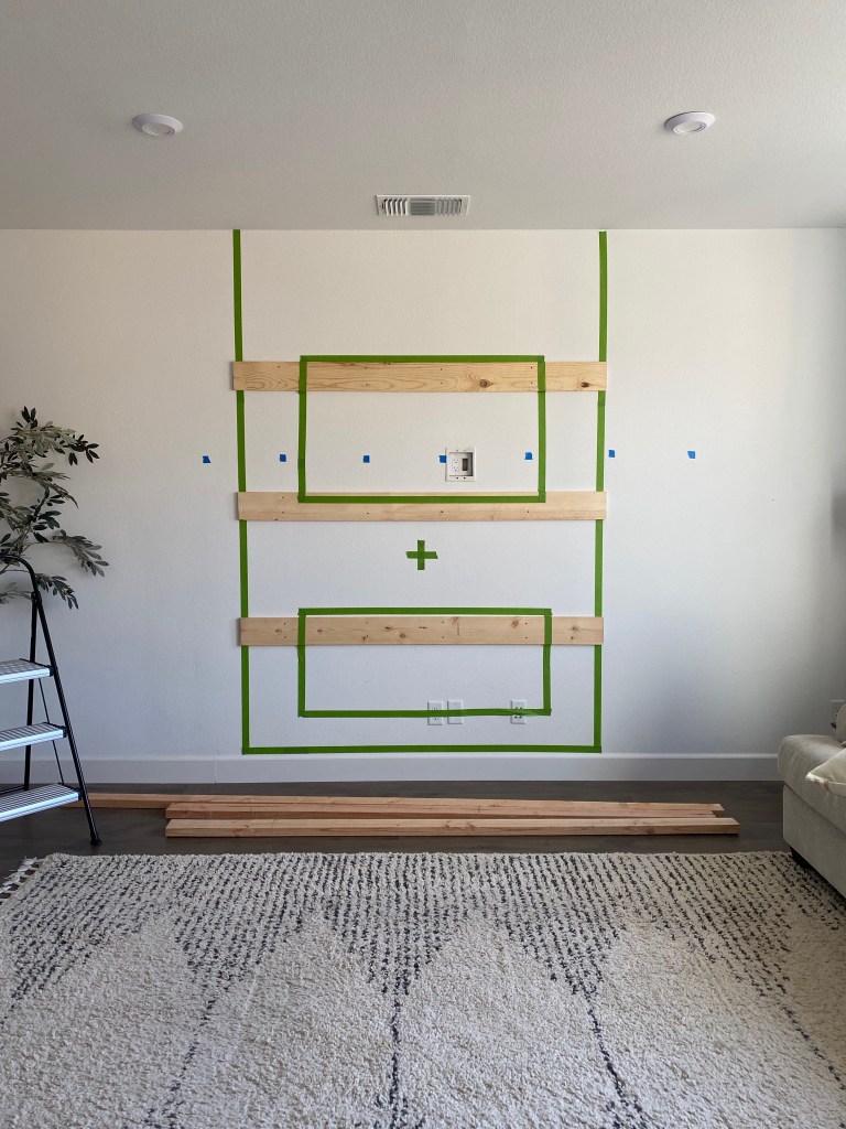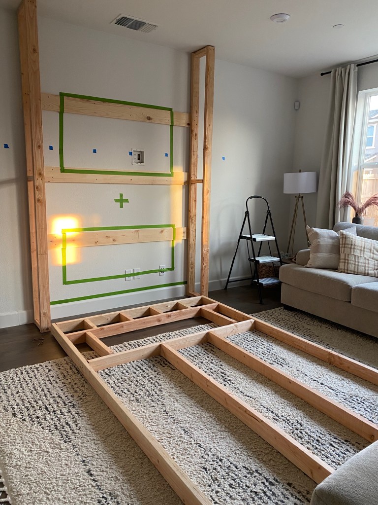 Week 2: We built the frame of our fireplace surround using a whooole bunch of 2x4s. Vince and I were both shocked at how efficiently we were able to complete this step. It took us somewhere between 6 to 8 hours to build this entire structure. Even more surprisingly, we had so much fun doing this together!