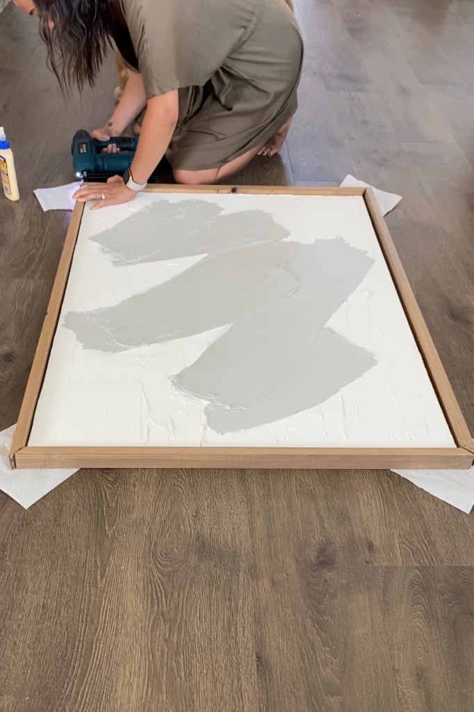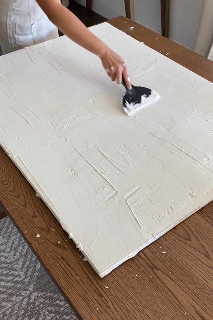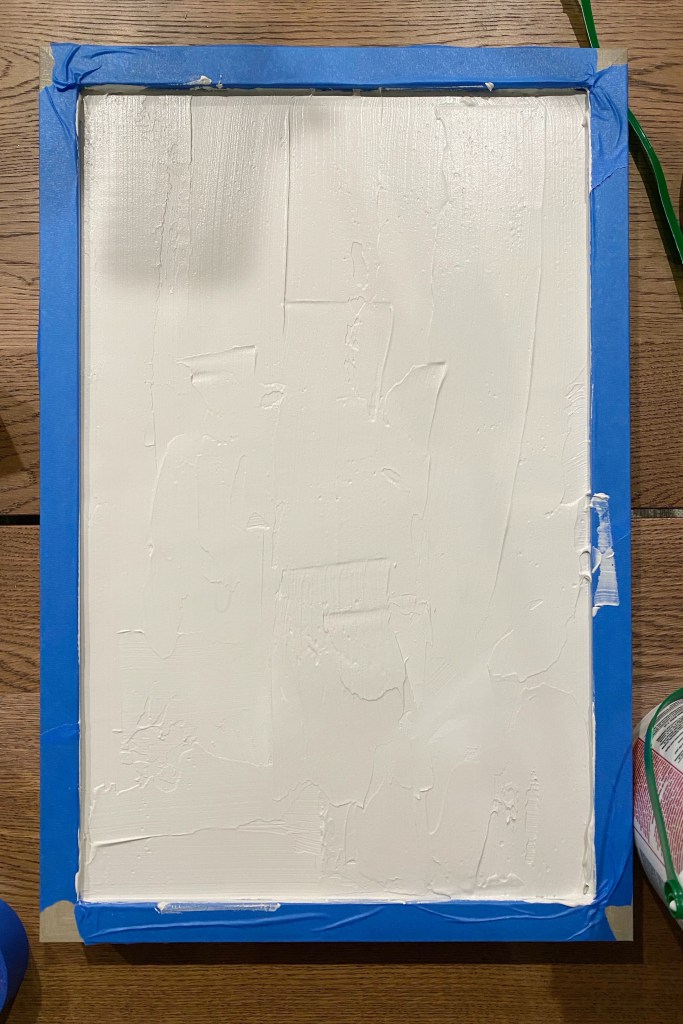 I covered my entire canvas with joint compound and smoothed it out to create a nice base layer.