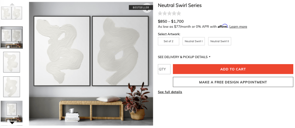 This set, which belongs to their Thom Filicia Home Collection, is a whopping $1,700. Yes, you read that right… One thousand and seven hundred dollars. Don’t get me wrong… It’s a beautiful set. I can see it hanging beautifully in so many different areas of our home, but what average, middle-class American can afford to spend that much on a piece of art? I can purchase 170 dinners, build myself another fireplace with stone tiles and adjacent floating shelves, or even travel to Europe! What’s even more surprising is that I’ve actually seen this artwork in some people’s homes (no judgement, just envy).